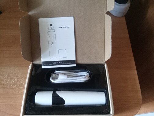 I received the nail grinder and I have used it. It really didn’t disappoint me. This nail grinder is really light, a small one. I don’t feel tired when I use it. I’ve used it twice. In the past, my dog just ran away as soon as when I show the nail clipper, but this time it didn’t run away! There was no loud noise when I was working. I bought a nail grinder from other bands before. The noise is too loud for my dog. As soon as I turned on the switch, my dog ran away! I am very happy to have this nail grinder as a good helper for my dog grooming