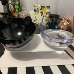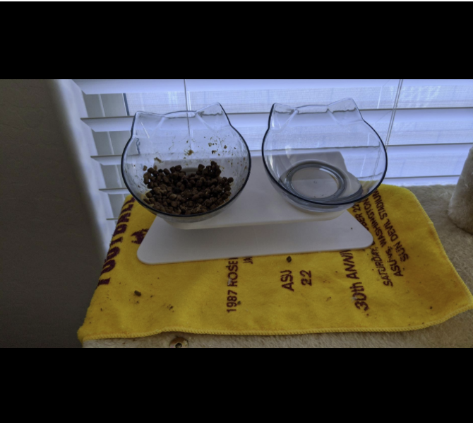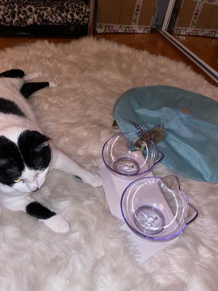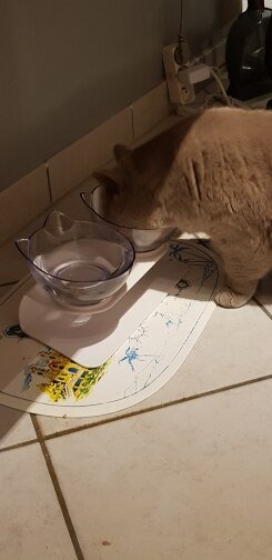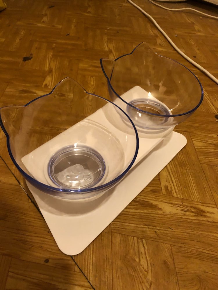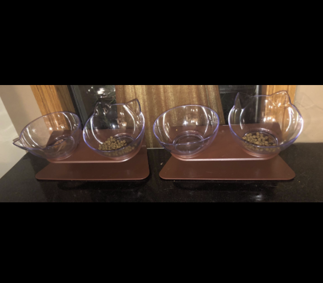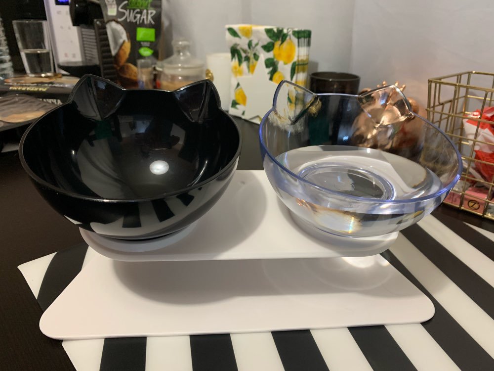 This is adorable and came super fast – my cats decided they won’t eat out of the food bowl we’ve had for years, so I ordered this! My cats are pukers so hopefully the elevated and tilted bowls help. I like that the bowls are small so food doesn’t go bad sitting out, and they “screw in” to the base so they don’t knock over, and it’s just overall adorable!