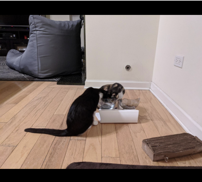 For whatever reason, the dog hasn’t even tried . The cat’s been giving him the side eye while eating, but even she is starting to relax about it.