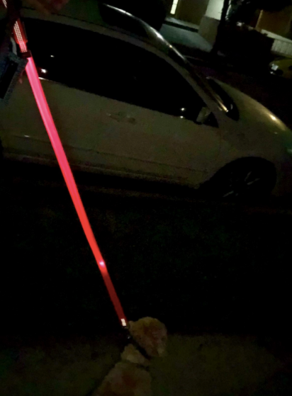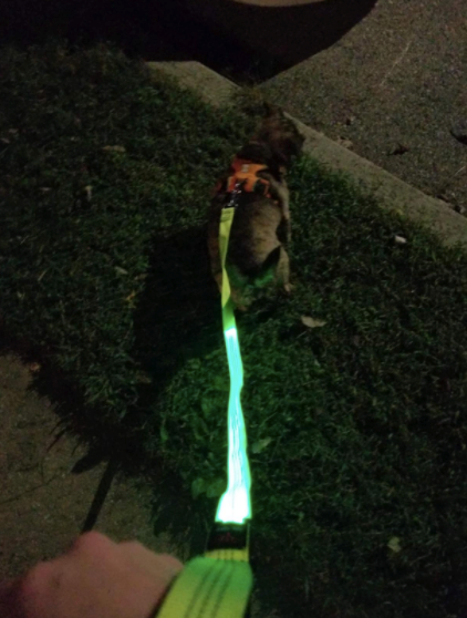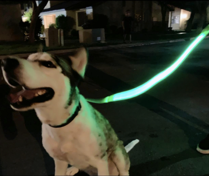 This leash is great! I like that I can recharge it a lot. I didn’t like the idea of wasting batteries, or the whole least with those other light-up leashes out there. It makes me feel better when walking my dog at night. I hold the leash across my mid-section too as I walk, so drivers know where I am as well 🙂