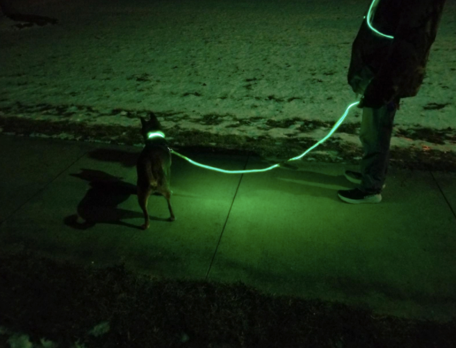 People tend to drive double the speed limit and drive through stop signs in my dark neighborhood, so cue the illumiseen. I switch between a normal leash during the day and use this exclusively at night. The batter lasts a while, ive had it for 2 months and still havent needed to charge the lights. It’s durable and holds my 50lb puppy fron charging at deer, although i wish the wrist grip was a little softer.