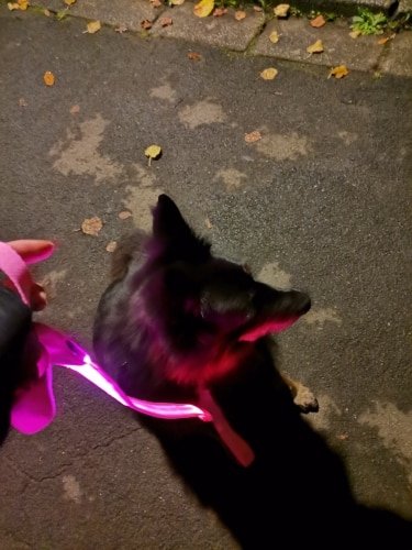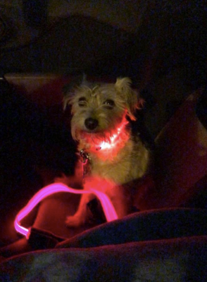 My husband and I often do not have a chance to get a run in until after dark, and our black dog can be hard to see in areas that aren’t so well lighted. This solved the problem!