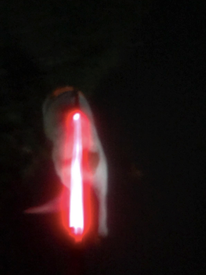 JUST PERFECT!!! Thanks!! This works really well! It gets dark so early in the PNW and I worry about my dog not being seen. This made me feel a lot more comfortable. My only complaint is that the light stops about a foot away from the dog, which I didn’t really notice in the picture. I wish it were bright closer to him as I’m concerned about him being seen, not the end where I’m holding it!