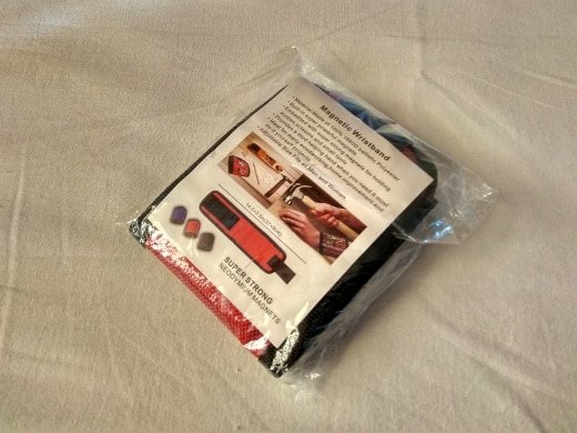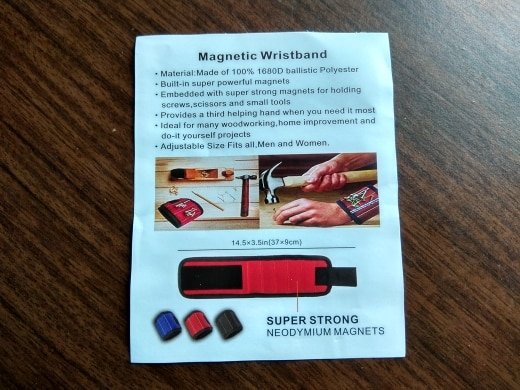 The magnets are pretty strong and can hold a bunch of screw and have little pockets for other items. Also, the package came with two wristbands, so you can optimize both hands and be extremely productive, this is a great products for a working set of hands.