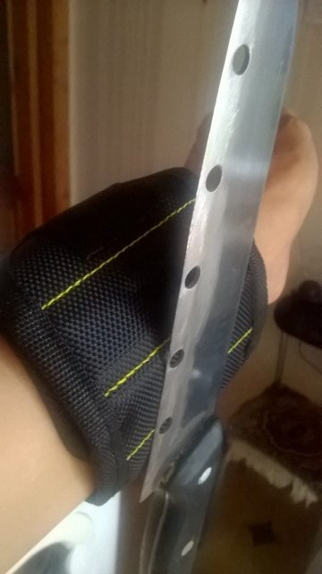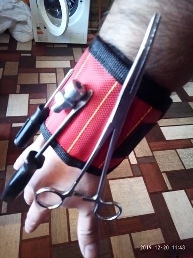 Wonderful wristband. The quality is excellent, well holds metal scissors, knives, all sorts of screwdrivers. Now you do not have to keep anything in your teeth.