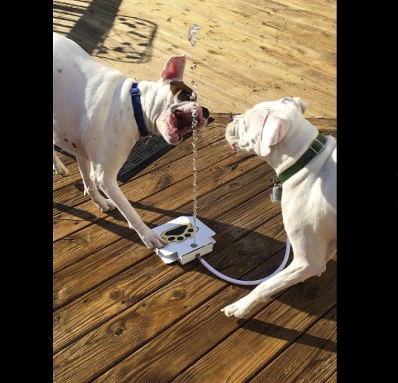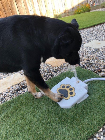 My dog, and kids, had so much fun with this! Easy to install! Kept them busy for a good 30 mins 🙂 whenever we took it out, the dog would go crazy. The only downfall is he never figured out how to step on it, I wish the push button was off the device. He knew the water would spray out and he couldn’t avoid getting it in the face.