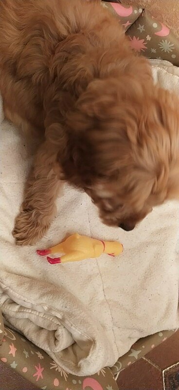There isn’t much to say. It’s a yellow rubber chicken. It looks just like the picture and arrived as promised. Dog very much liked