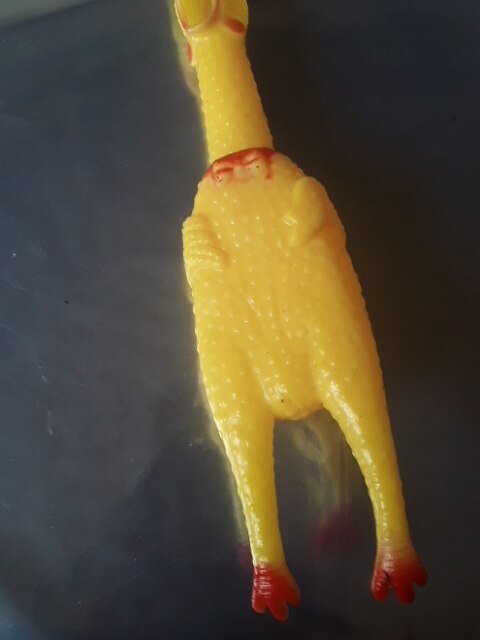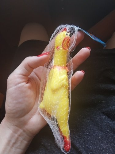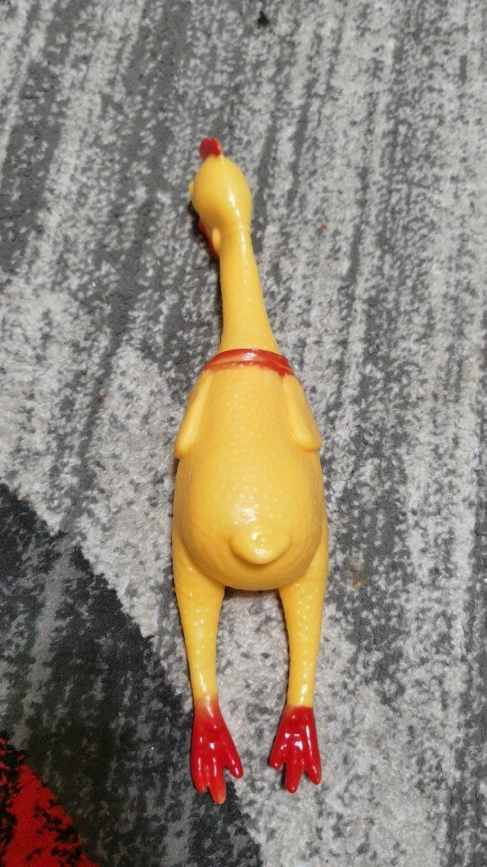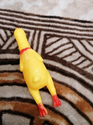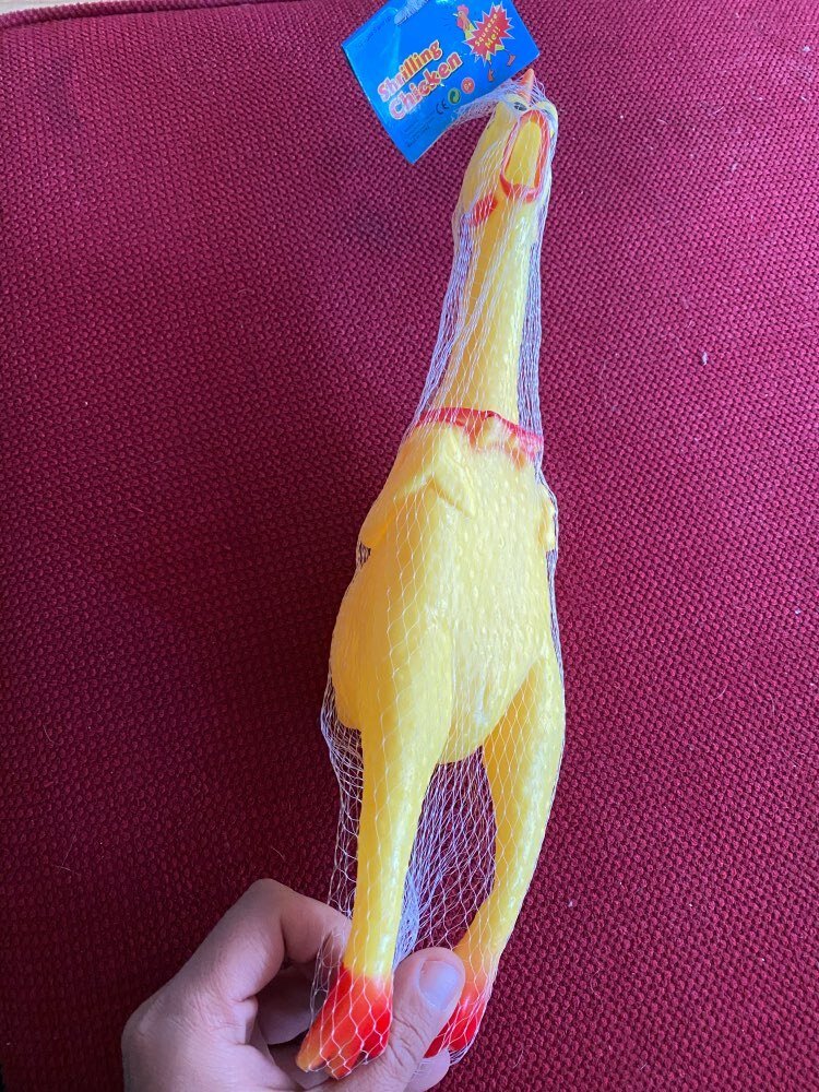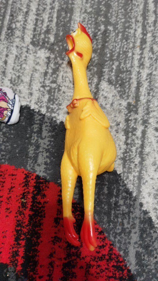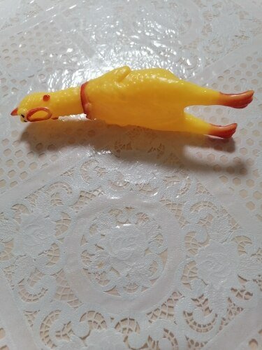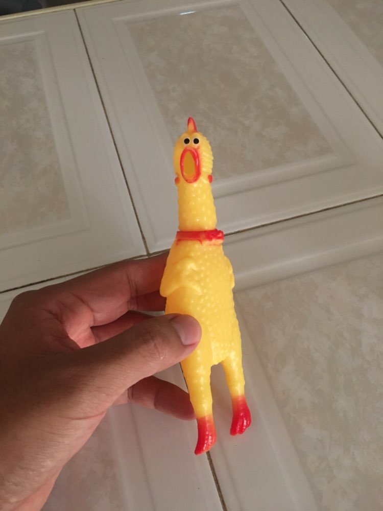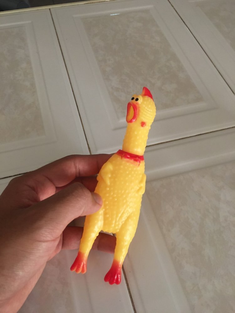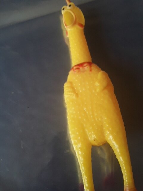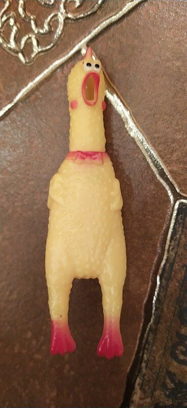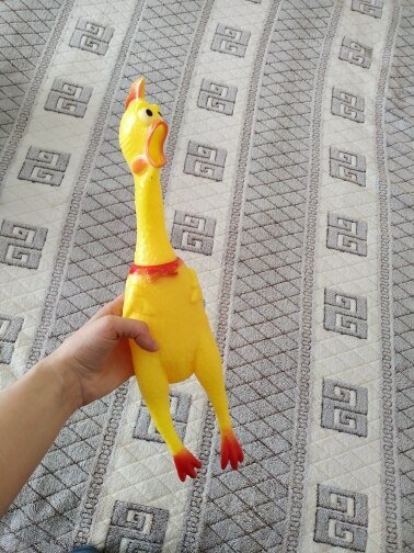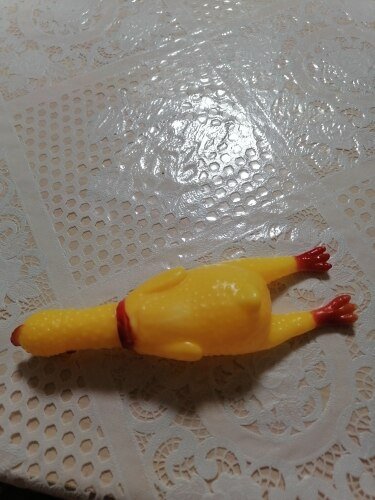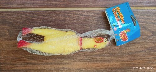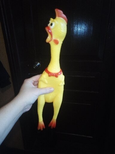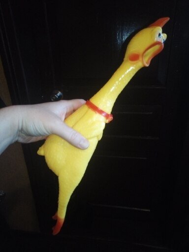 Fair enough product for a cheap rubber chicken. However, if you’re buying this chicken to use as an instrument to play songs like you may have seen on YouTube… Definitely not good for that. The pitch is not variable No matter if you squeeze it hard or soft, faster slow. One pitch only. You’re probably not purchasing this chicken to make music like I was, so I’m sure you’ll be just fine!! If you are intrigued and a little adventurous, get on YouTube and type in “Bohemian Rhapsody, rubber chicken“ in the search bar. 🤣