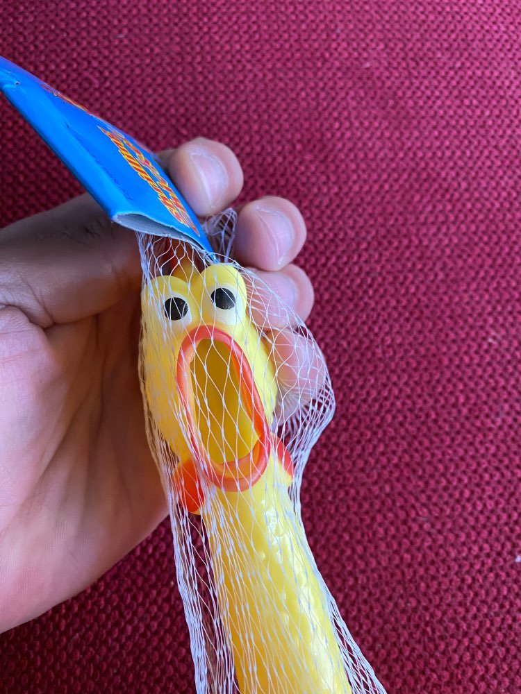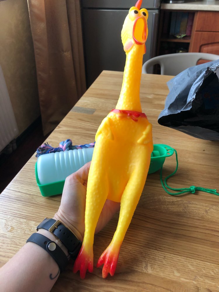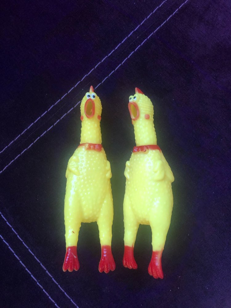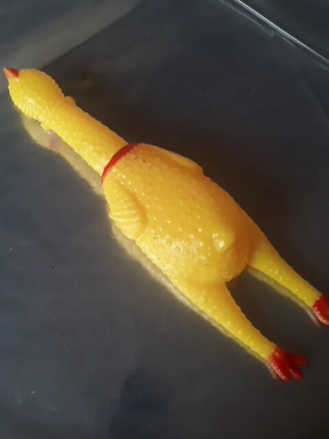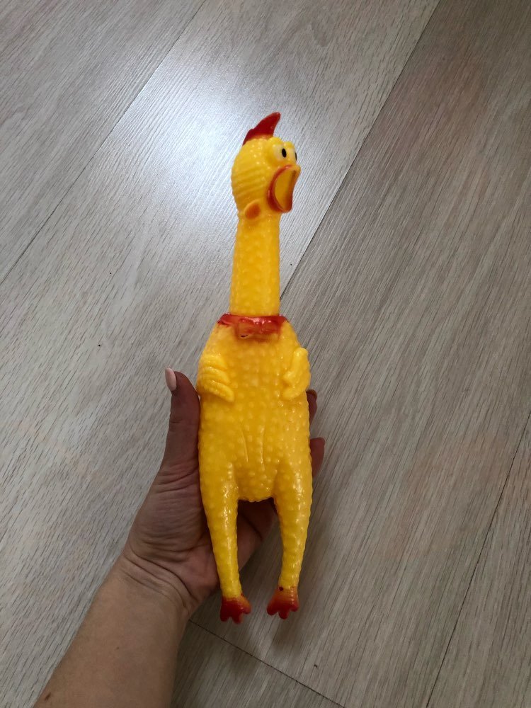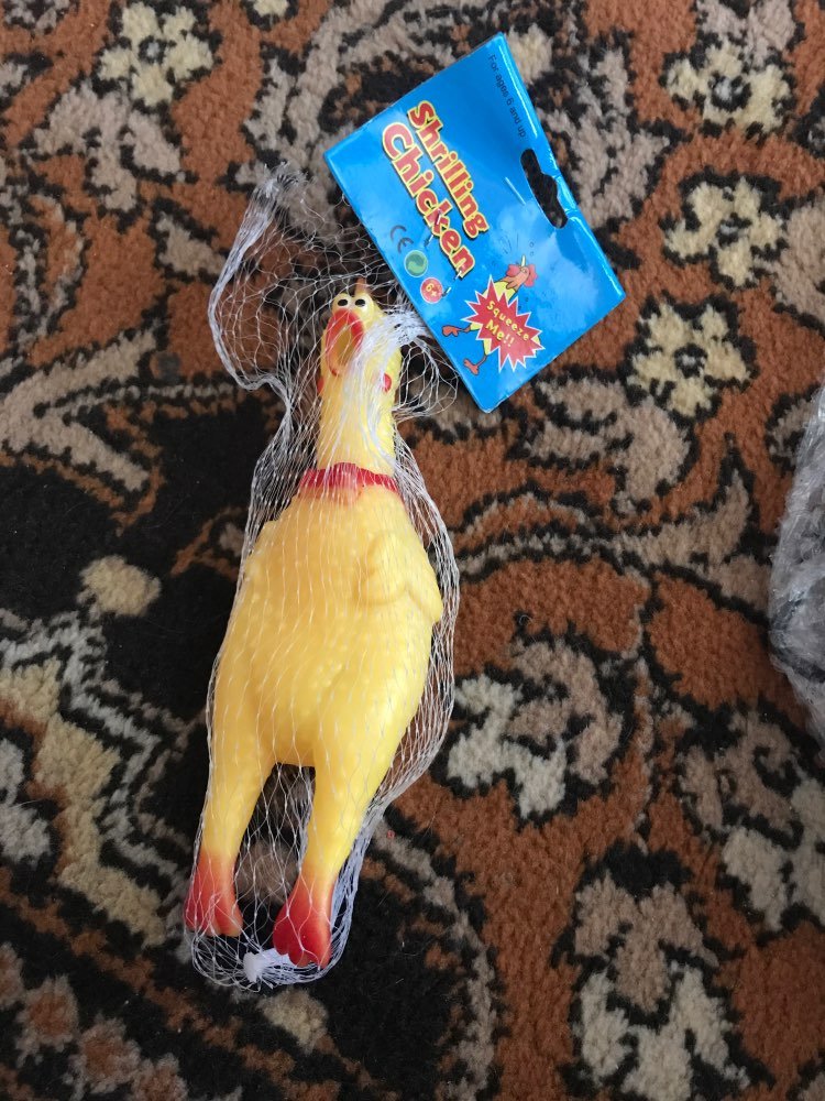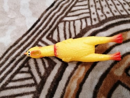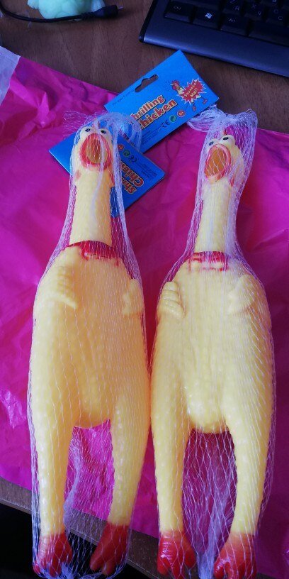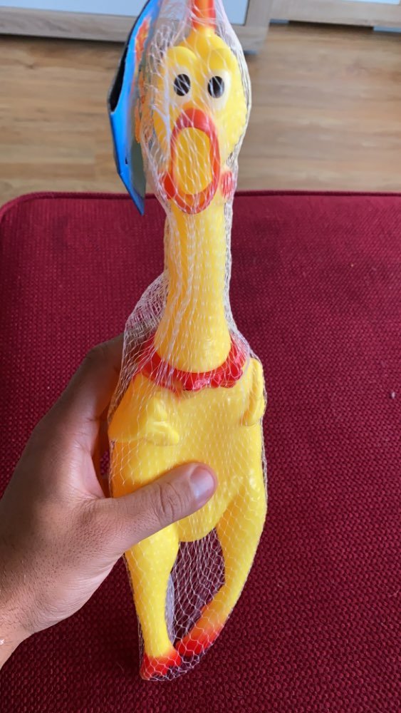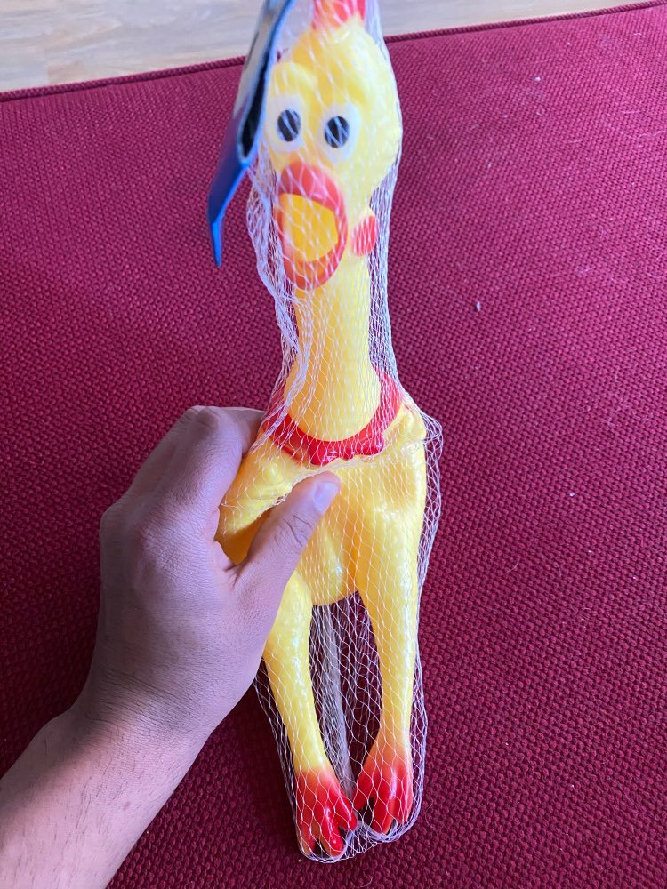 Fair enough product for a cheap rubber chicken. However, if you’re buying this chicken to use as an instrument to play songs like you may have seen on YouTube… Definitely not good for that. The pitch is not variable No matter if you squeeze it hard or soft, faster slow. One pitch only. You’re probably not purchasing this chicken to make music like I was, so I’m sure you’ll be just fine!! If you are intrigued and a little adventurous, get on YouTube and type in “Bohemian Rhapsody, rubber chicken“ in the search bar. 🤣