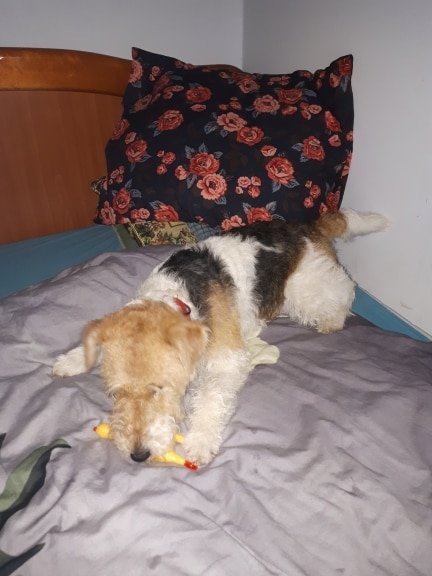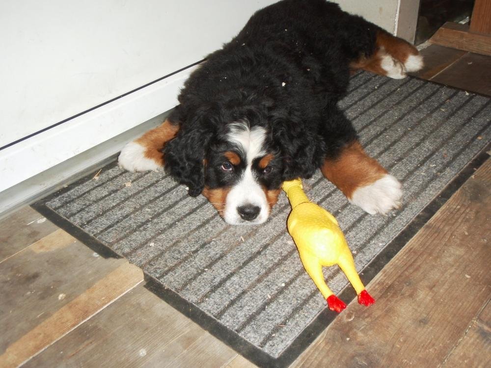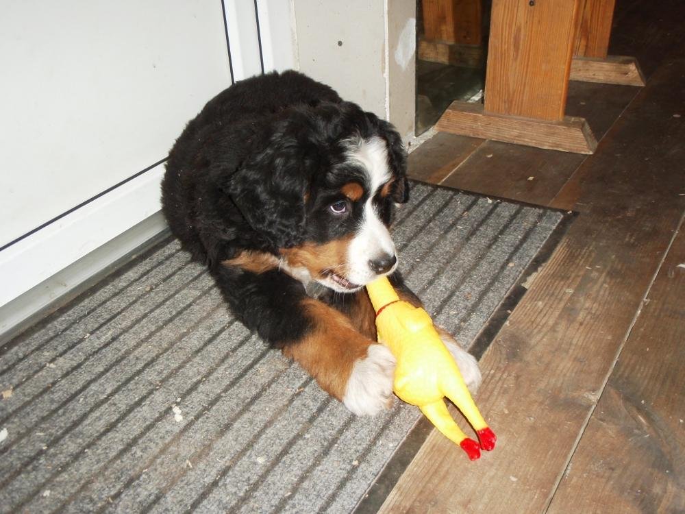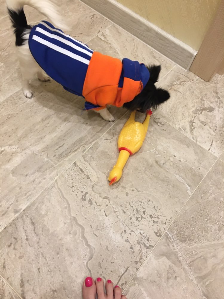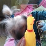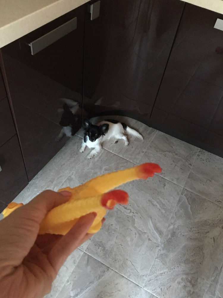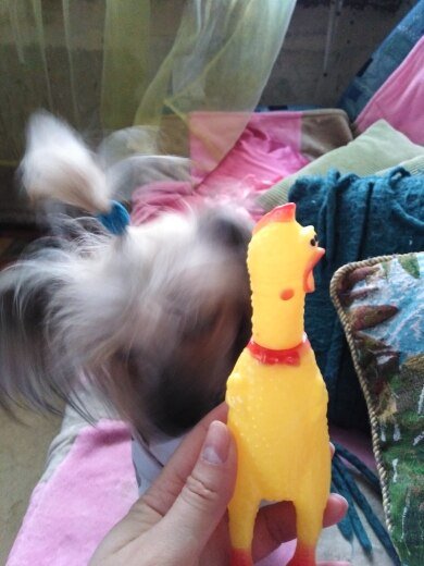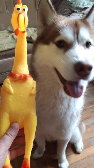 Chicken is cool, so screams 🙂 the dog is delighted.