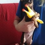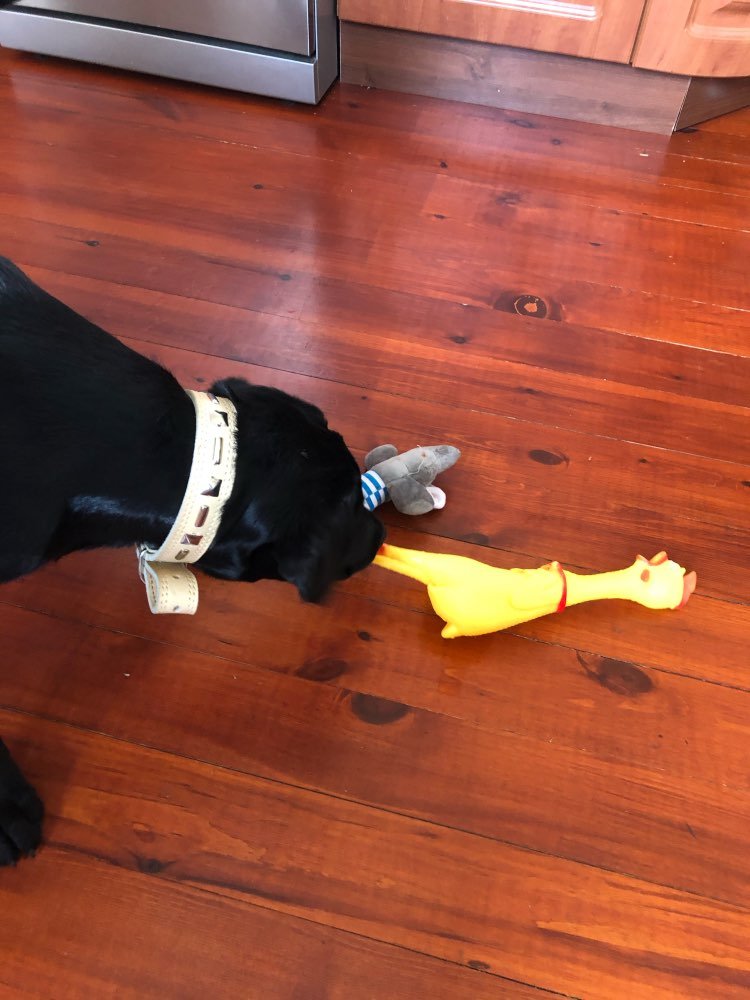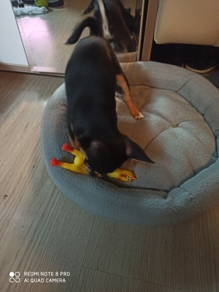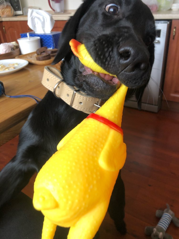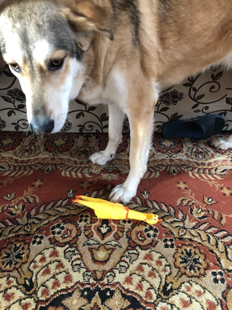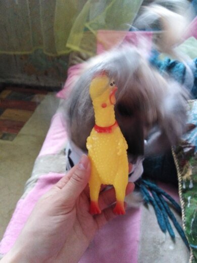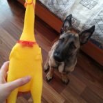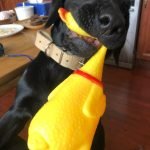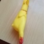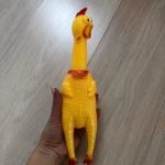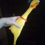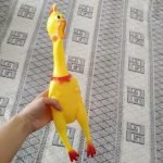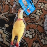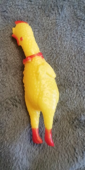 This is my dogs favorite toy! He has had one for years- it is his present to us when we get home or he has does something he is good, etc…. his last one broke after five years of hard use…. I needed one quickly so I ordered a replacement “chicken”. It came quickly and was exactly as was expected… it even looks better made than the original one I had… thick rubber chicken with squeaker…. such a happy dog again!!! I was very happy with the customer service, was they send a thank you note too!