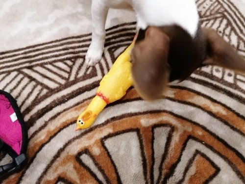 My dog loved it at first, but the squeak/squawk wore out within only 2-3 days. It now sounds like it has laryngitis and barely makes a noise at all. He was also able to pull the two halves apart pretty easily. They popped back together, but I’m not sure why it is designed to pop apart to begin with? Overall, I wouldn’t recommend this unless it’s just for a quick prop or something that you don’t need to function for very long.