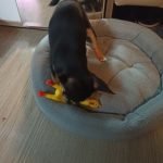 I thought the toy would last a litle longer than 10 minutes…..our dog loved it for that long—-He has another quite similar and it’s lasted—the rubber is a little stronger, however—–really cute idea…..
