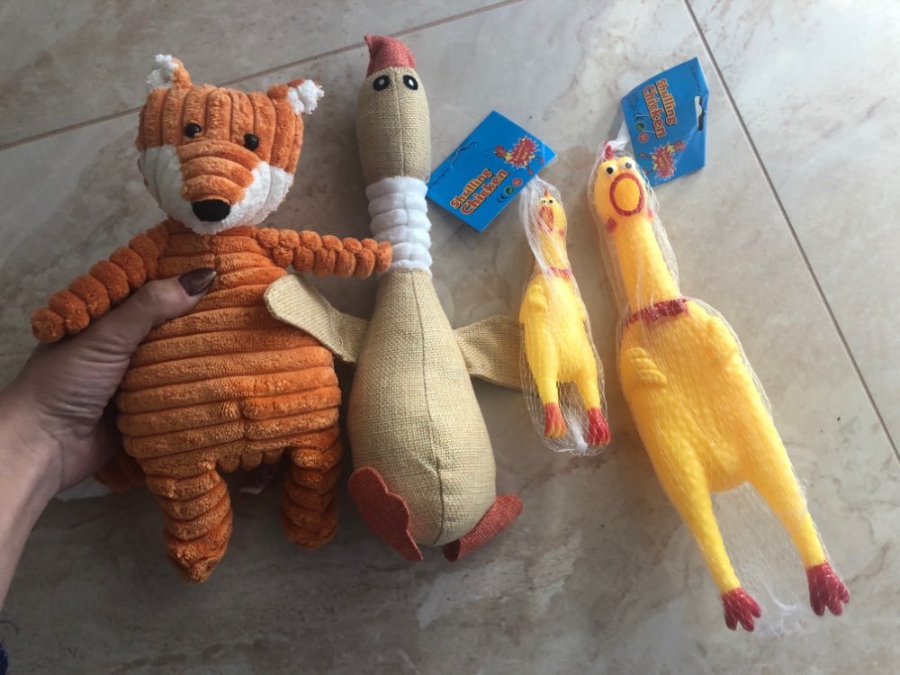 Great chickens. The dog is really getting used to them, barking on them. It’s time. Recommend the item, the price is super and fast delivery. Thank you