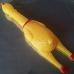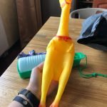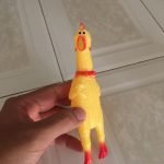 My fiance loves (probably too much…) those videos with the singing rubber chickens, so I purchased this one for his birthday! After informing him that he will NEVER wake me up with the rubber chicken (…or else the rubber chicken will find itself at the rubber chicken slaughter house…), he began to squeeze it, and this rubber chicken is now a constant source of amusement in our house! Its fun and silly – just buy it!