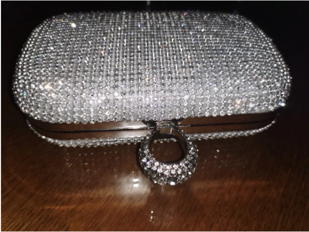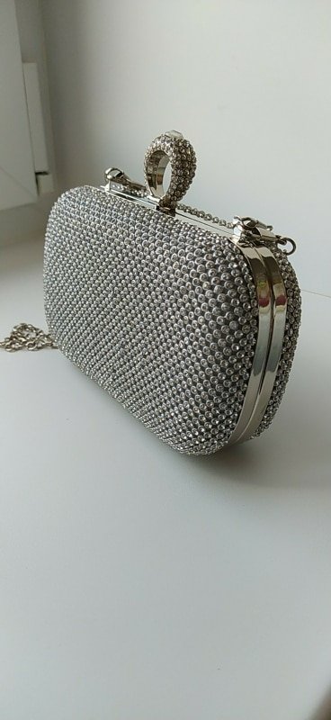 I’ve owned a little black dress and silver shoes for a long time, but I’ve never had a matching clutch to go with it. I bought this lovely silver clutch to complete my outfit for a business event. It’s a classic look with enough inside storage for the evening (lipstick, credit cards, money), but it won’t hold my large iPhone. It’s shiny but not overly so, which is tasteful for me. It can be carried in-hand or over the shoulder because it has a fine link chain strap that fits inside the clutch or comes outside. I like it very much. If it gets a little dirty, you can wipe if off with a mild soap solution.