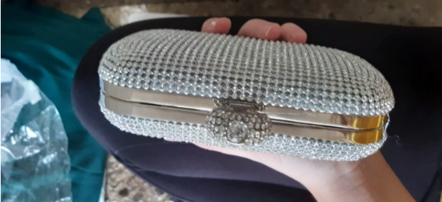 Lovely clutch, as described! Daughter used for her prom day and it was perfect! Very lightweight and pretty! Very happy with purchase!